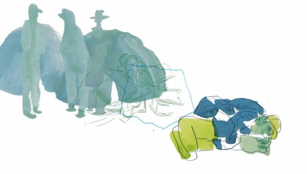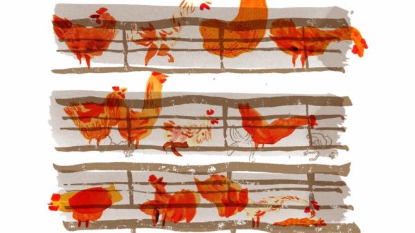 The Walker works in a poultry farm. Disgusted by his despicable work, he gives up and follows the Indignant, diluting his anger in theirs.