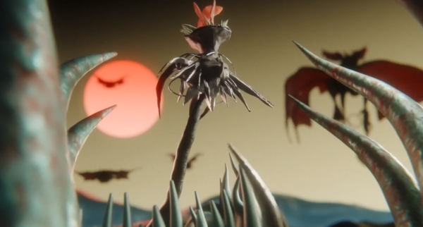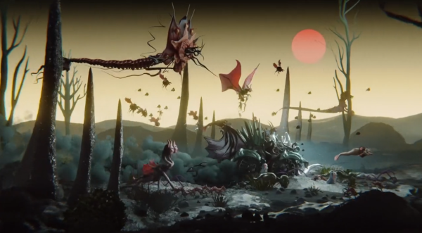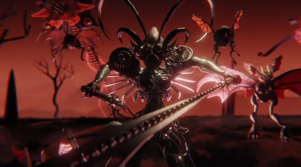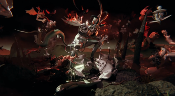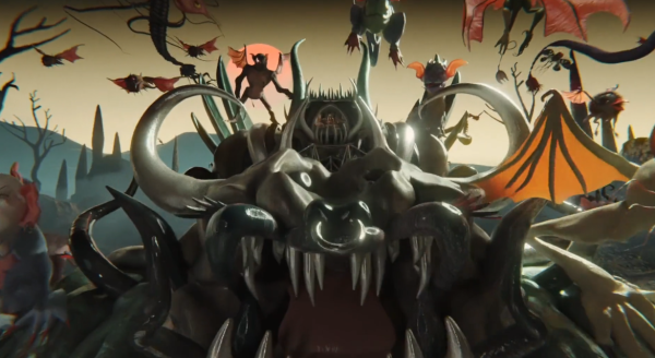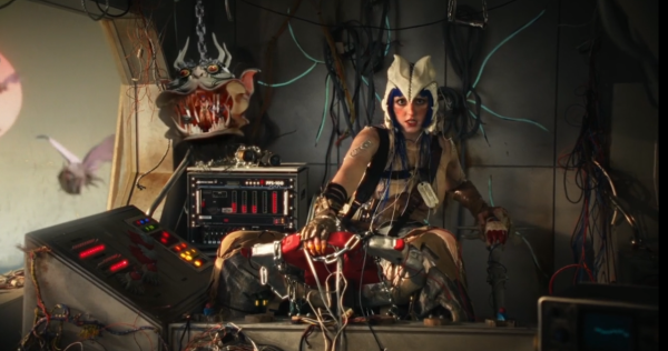 Ashnikko in a monster truck and a squad of develish beasts ride towards the sunset to battle the angelic overlord robots.