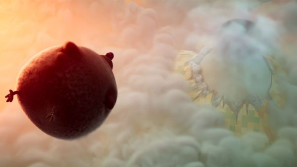 A chicken coop set up at the foot of a nuclear power plant sees its daily life turned upside down by a series of comic, cartoon-style mutations.