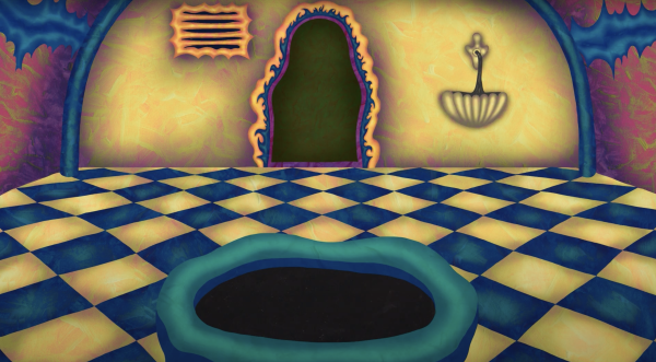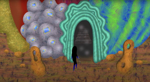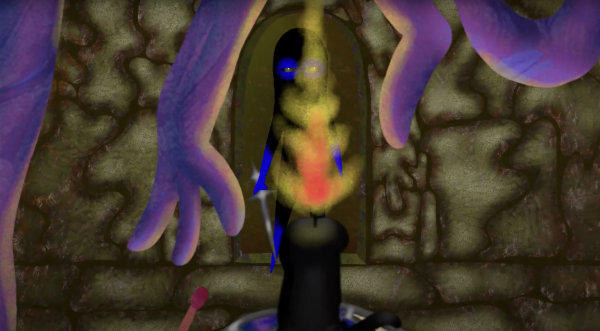 A shadow knight explores an interdimensional palace while being chased by the roots of an ever-growing rose.
