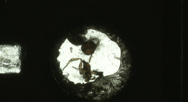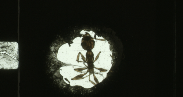 Maruyama’s most screened work has been described as “Lynchian” with a clear touch of Brakhage. Entombed in a single frame of each second of Super 8 film is the corpse of an ant, illuminated by a small burned-out hole, much like the tunnels within an anthill. A haunting miniature tragedy.